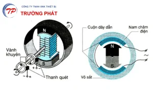 Bộ góp điện và chổi than (nếu có): Dùng để dẫn dòng điện kích từ từ nguồn bên ngoài vào cuộn dây kích từ của rôto.