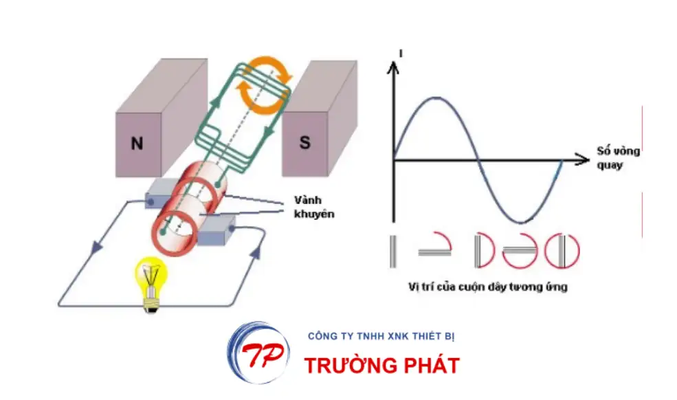 Do từ thông thay đổi liên tục theo chiều quay của Rotor. Suất điện động cảm ứng trong cuộn dây cũng thay đổi theo chu kì. Từ đó tạo ra dòng điện xoay chiều (AC). Dòng điện này có dạng hình sin và tần số phụ thuộc vào tốc độ quay của Rotor. Hình thành dòng điện xoay chiều – loại điện phổ biến trong sinh hoạt và công nghiệp.